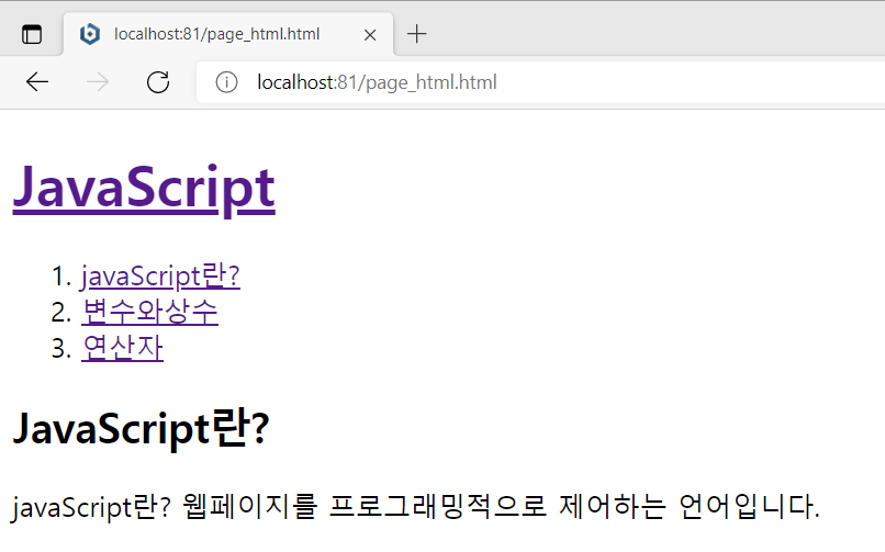 언제든 메인으로 돌아오기 위해 <h1>에 <a>index.html을 설정해준 모습도 볼수 있다.