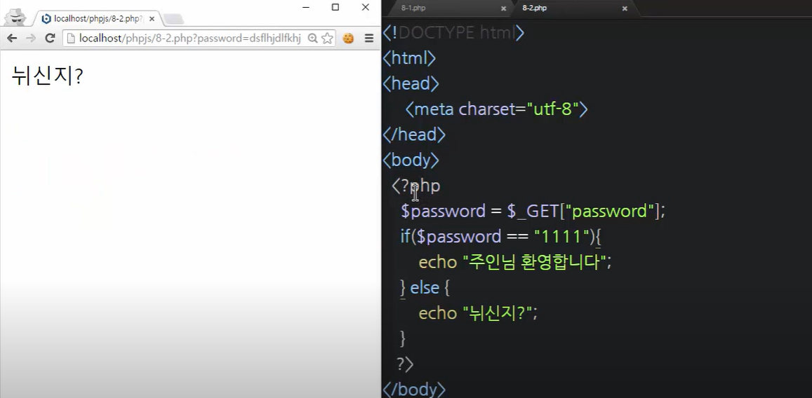 조건에 따라서 즉 패스워드 값에 따라서