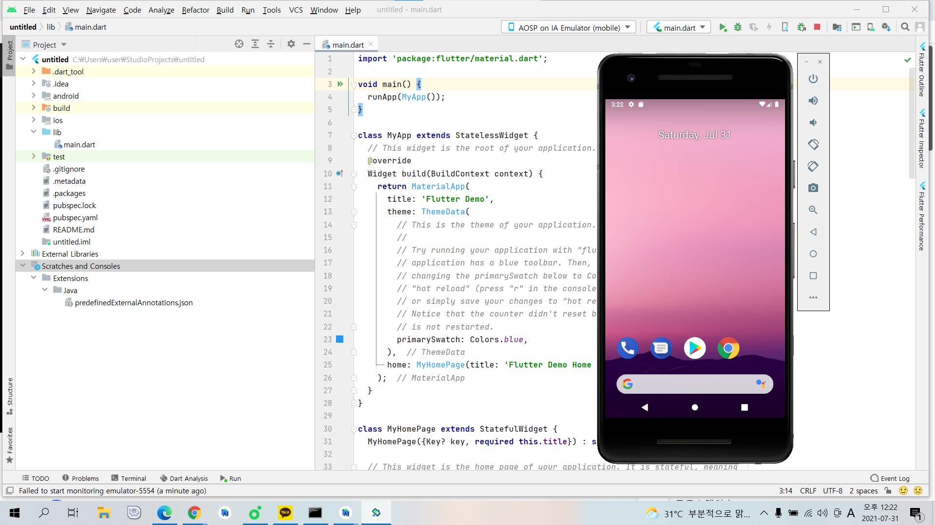 2. visual studio code로 프로젝트 생성 / 에뮬레이터 실행
