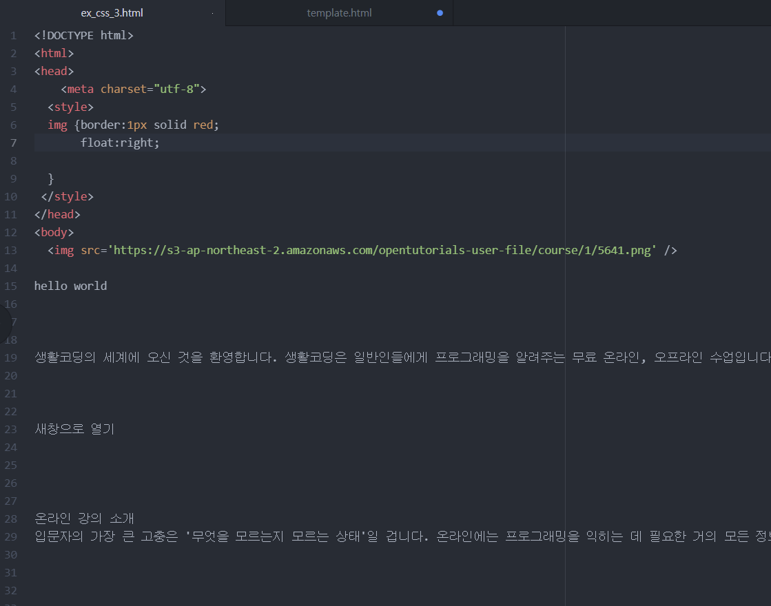 3. <style> 안에 img의 대한 효과추가 float:right; 즉 사진 오른쪽으로 글들이 합쳐져서 보다 깔끔하게 보인다.