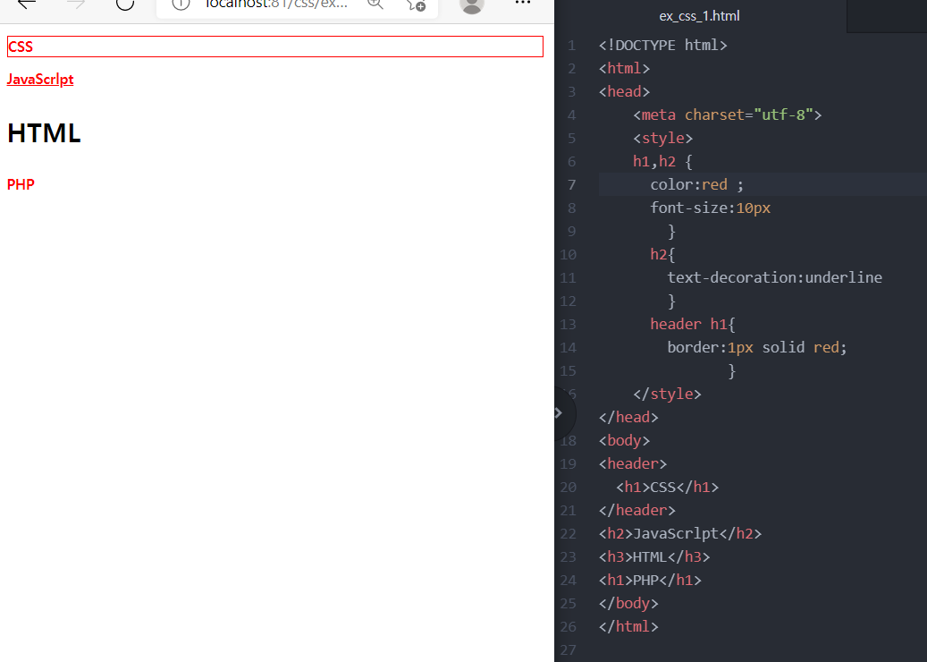 - border: 1px red solid; (1픽셀의 빨간색 선태두리 박스생성) 순서는 바뀌어도 상관없다.