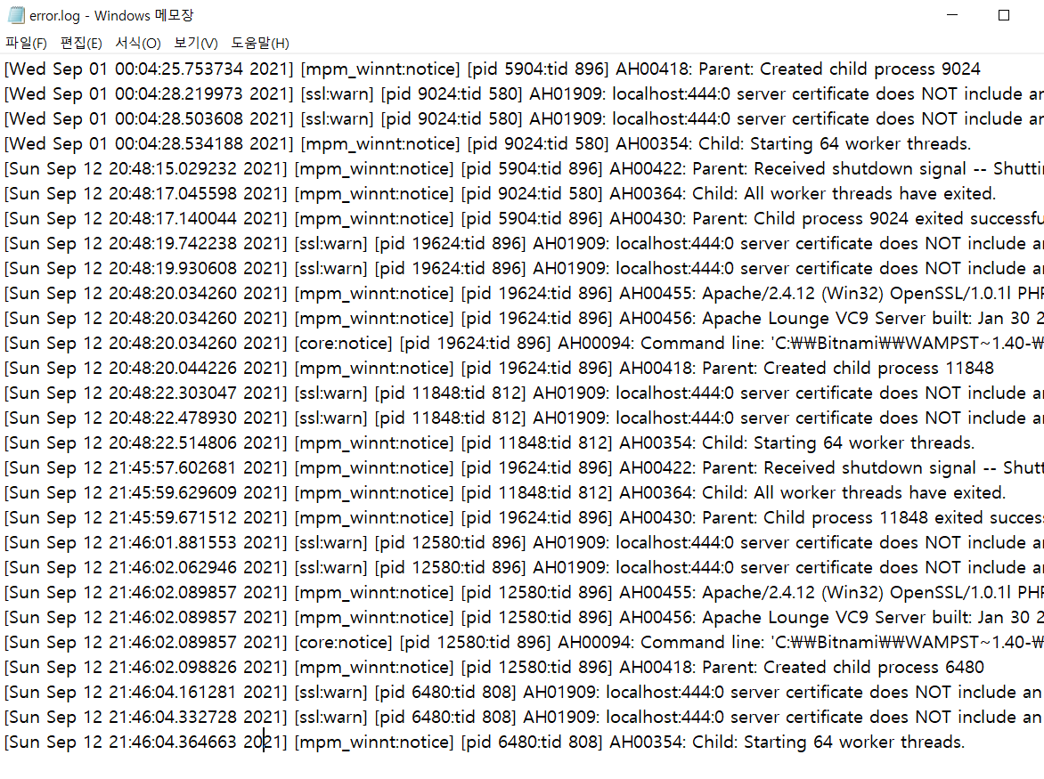 당연히 변경 후엔 Manage Servers에서 Apache Web Server을 Restart 해주면 된다.
