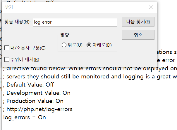 log_error를 on으로 바꿔줬다.