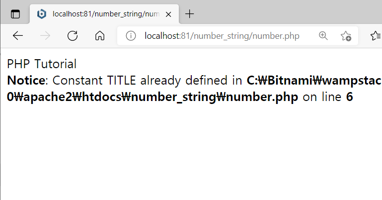 왜냐하면 'TITLE'은 이미 'PHP Tutorial' 이라는 변수를 이미 받은 상수여서 이제는 더 이상 바꿀 수 없는 값인데