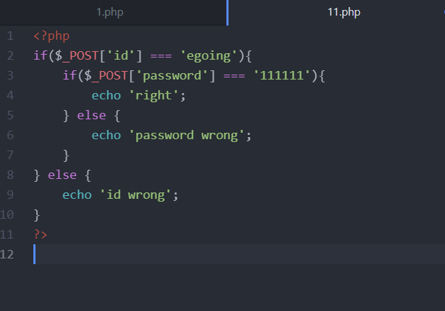 그냥 단순히 if 구문안에 추가로 if 비밀번호 구문을 만들어 두 가지가 해당될 때만 right로 echo 되게 만들면 된다.