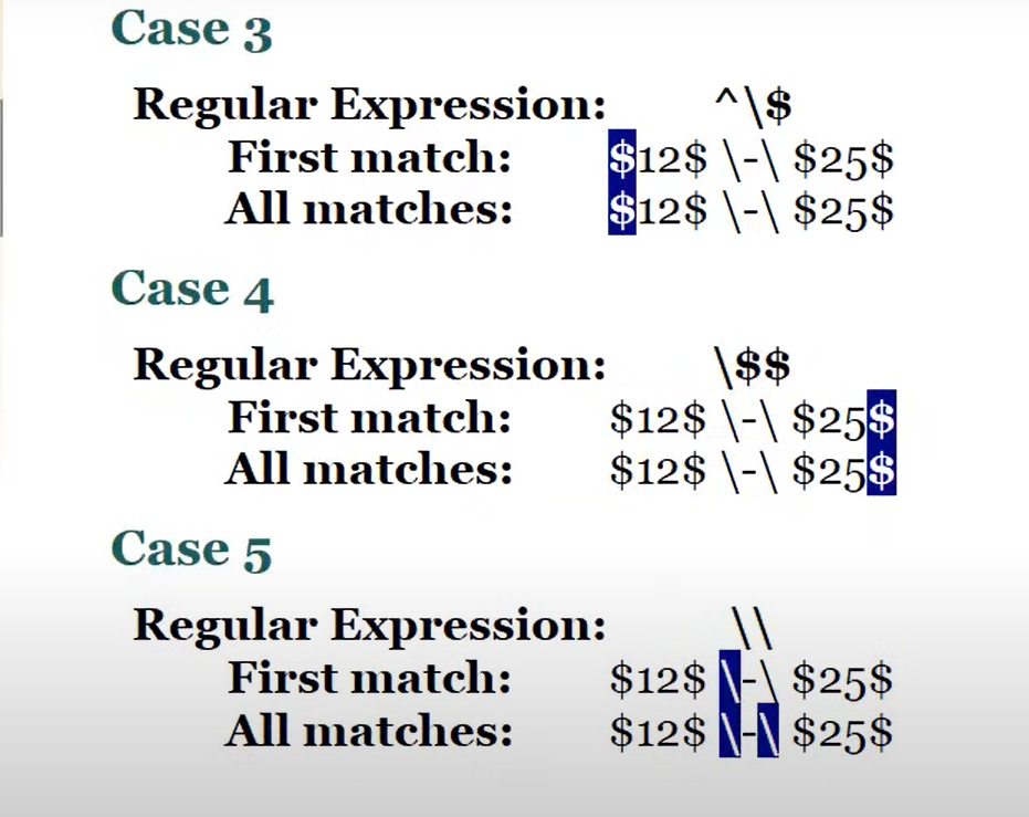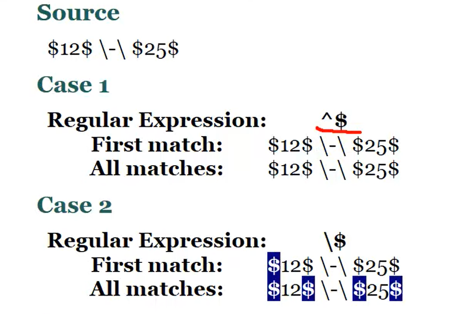 ^$ 여기서의 $는 문자열의 특수기호로 인식하기 때문이다.(앞서 말한 뒷 텍스트 찾아주는 기호로 인식)