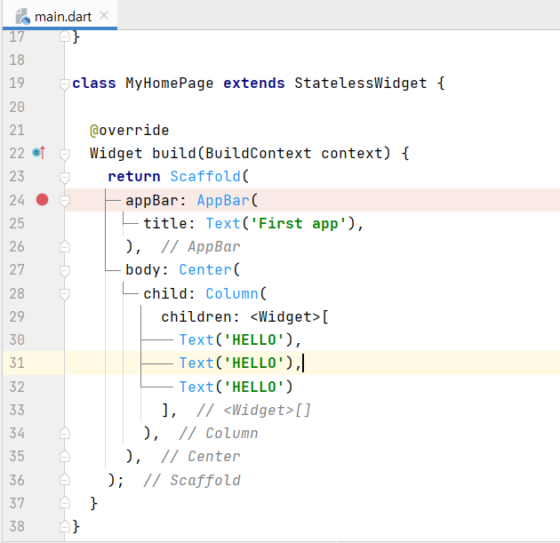 앞서 했던 내용들처럼 Grade이름을 가진 home 위젯을 stl로 만들어 준 것부터 시작. 1. Scaffold ( backgroundColor: Colors.amber[800], appBar: AppBar( backgroundColor: Colors.amber[700], centerTitle: true, elevation: 0.0 ), //AppBar ); //Scaffold .... 등 기본적으로 알고 있는 내용 말고 추가적인 내용은 사진첨부. 1. body안에 Text를 2개 기입 2. 두 번째 Text는 글자 간격과 크기 등을 추가로 조정하였다. 3. Text와 Text 사이의 간격을 SizeBox로 조정하였다. 4. crossAxisAlignment: CrossAxisAlignment.star..